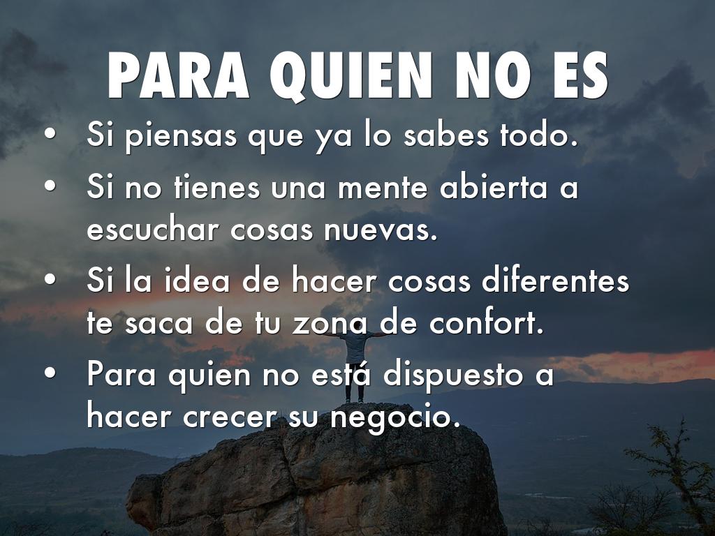 • Para quien no está dispuesto a hacer crecer su negocio.