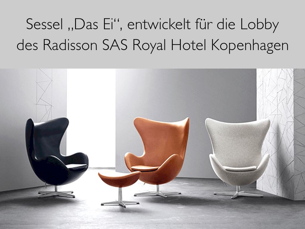 Sessel „Das Ei“, entwickelt für die Lobby des Radisson SAS Royal Hotel Kopenhagen