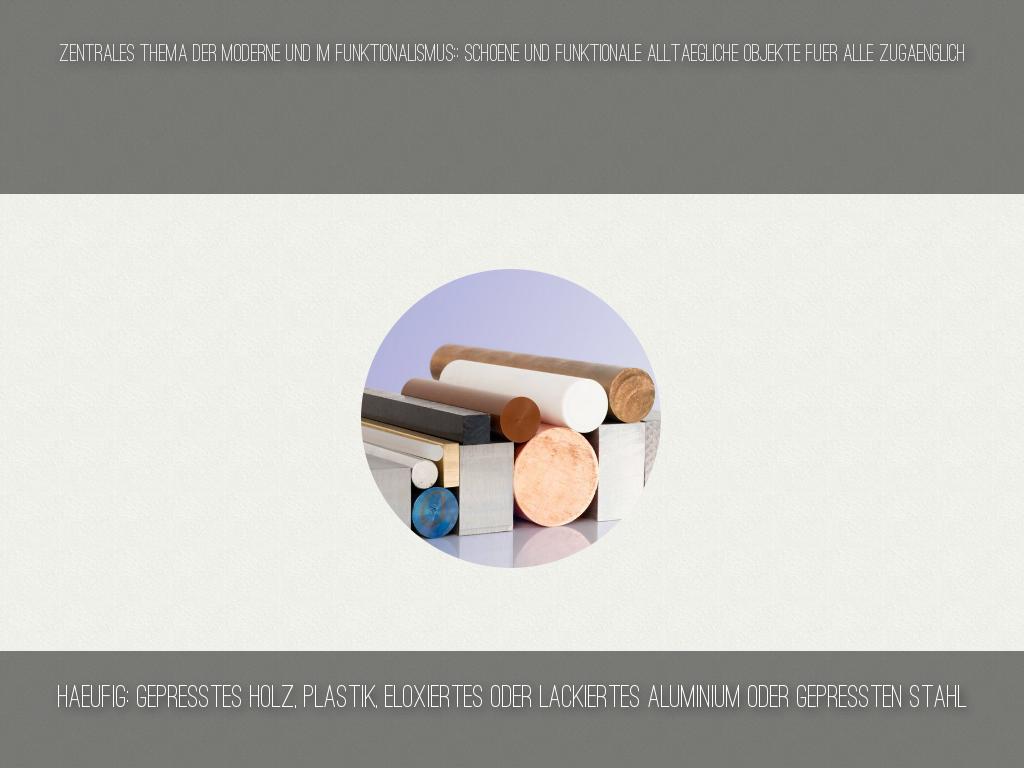 ZENTRALES THEMA DER MODERNE UND IM FUNKTIONALISMUS:: SCHOENE UND FUNKTIONALE ALLTAEGLICHE OBJEKTE FUER ALLE ZUGAENGLICH