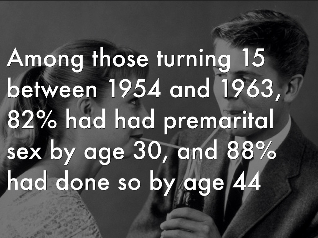 Among those turning 15 between 1954 and 1963, 82% had had premarital sex by age 30, and 88% had done so by age 44