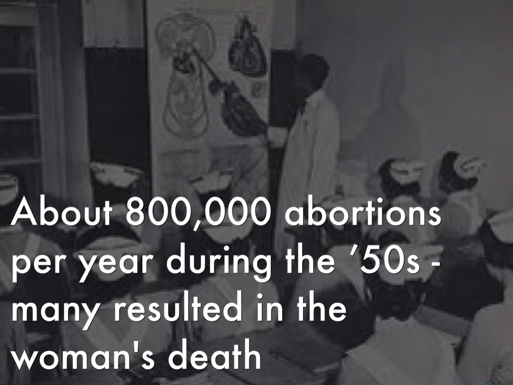 About 800,000 abortions per year during the ’50s - many resulted in the woman's death