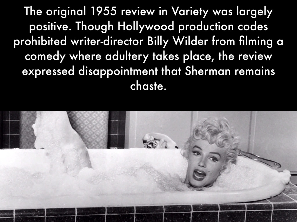 The original 1955 review in Variety was largely positive. Though Hollywood production codes prohibited writer-director Billy Wilder from filming a comedy where adultery takes place, the review expressed disappointment that Sherman remains chaste.