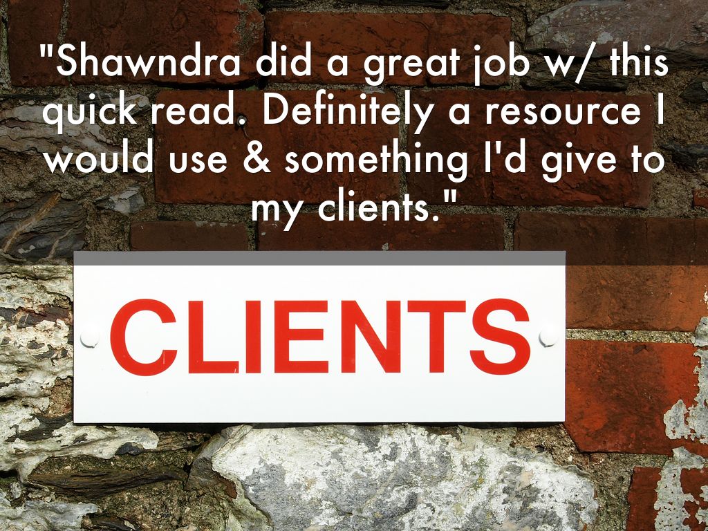 "Shawndra did a great job w/ this quick read. Definitely a resource I would use & something I'd give to my clients."