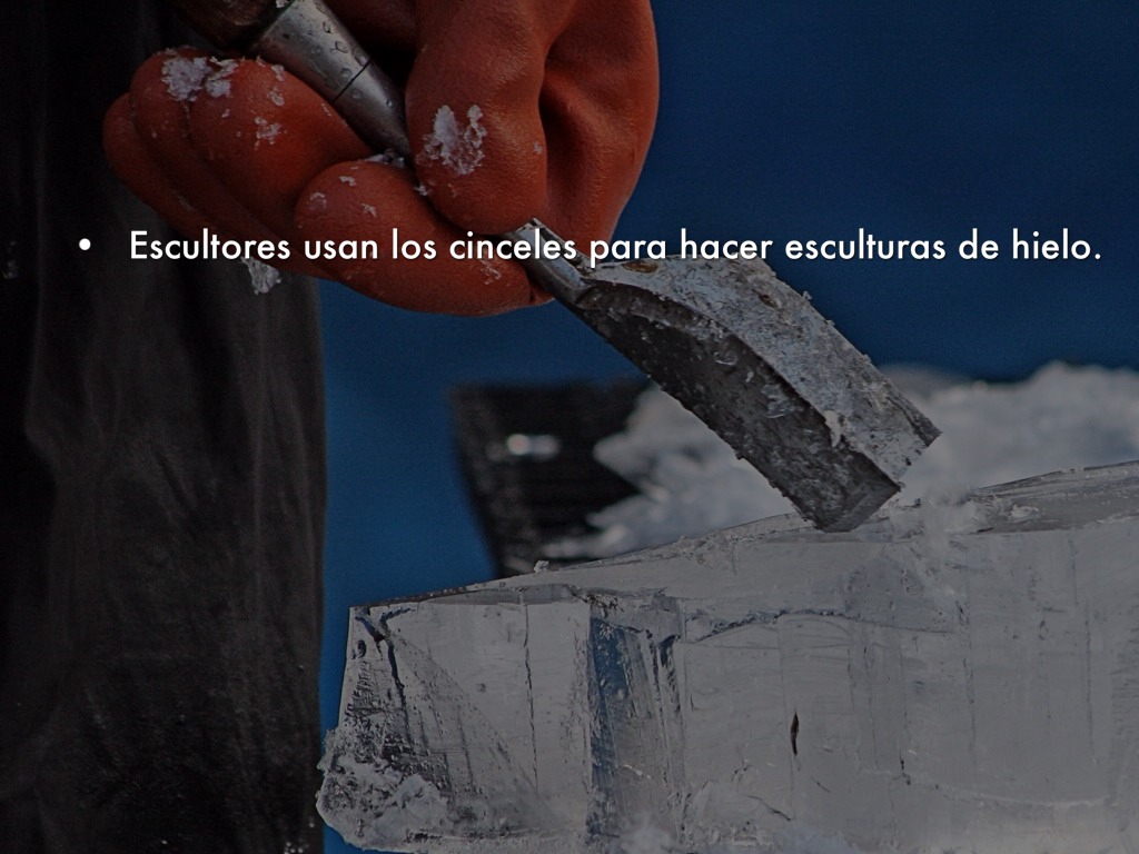 Escultores usan los cinceles para hacer esculturas de hielo.