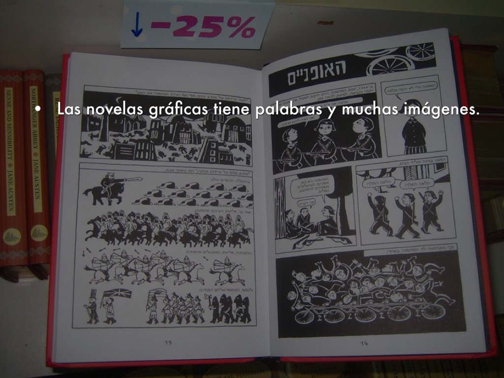 Las novelas gráficas tiene palabras y muchas imágenes.