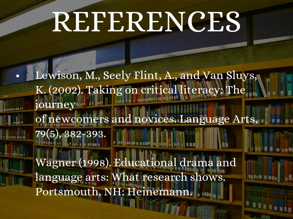 Wagner (1998). Educational drama and language arts: What research shows. Portsmouth, NH: Heinemann.