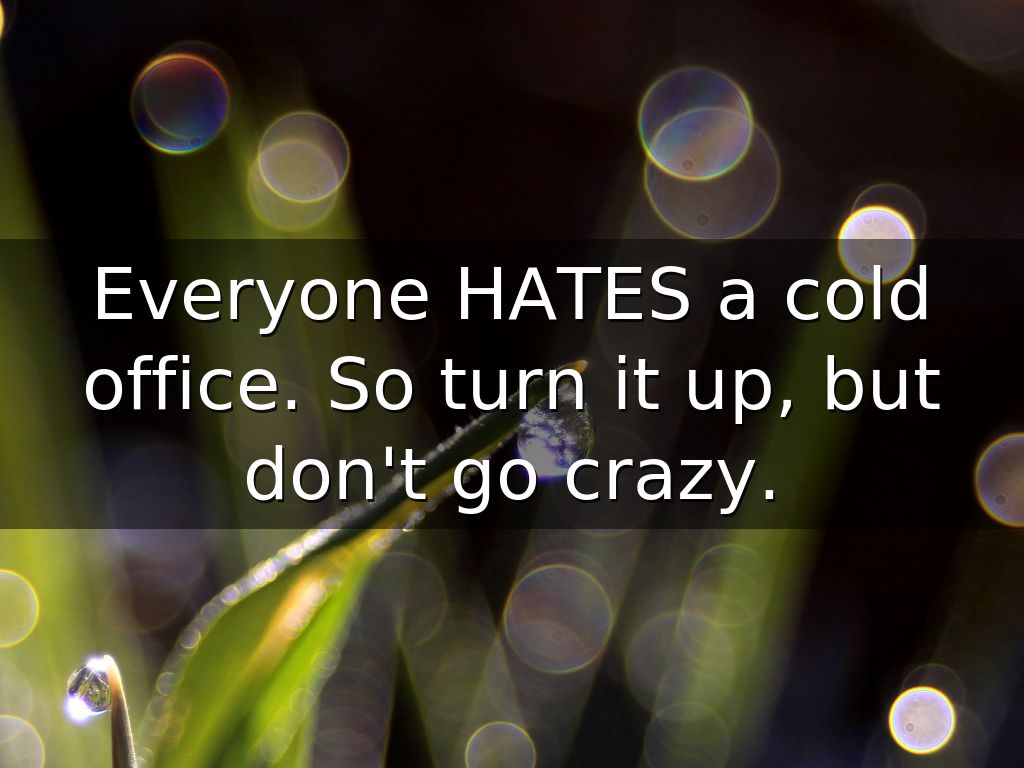 Everyone HATES a cold office. So turn it up, but don't go crazy.