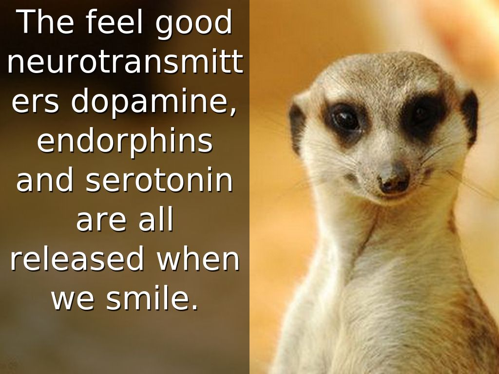 The feel good neurotransmitters dopamine, endorphins and serotonin are all released when we smile.