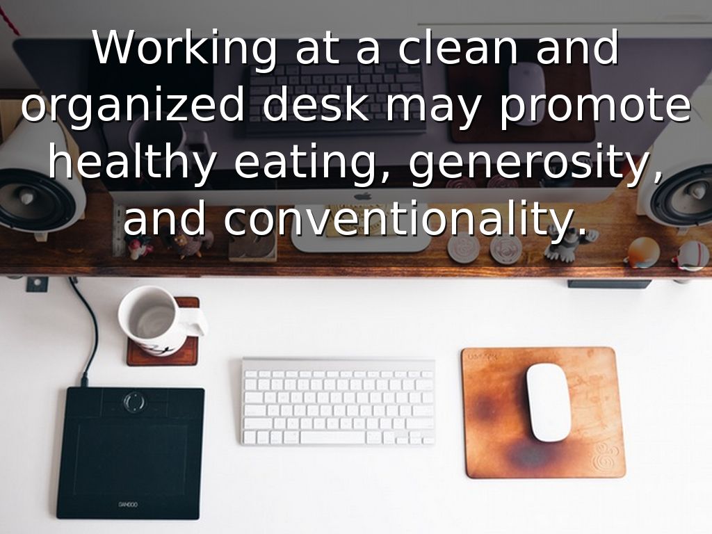 Working at a clean and organized desk may promote healthy eating, generosity, and conventionality.