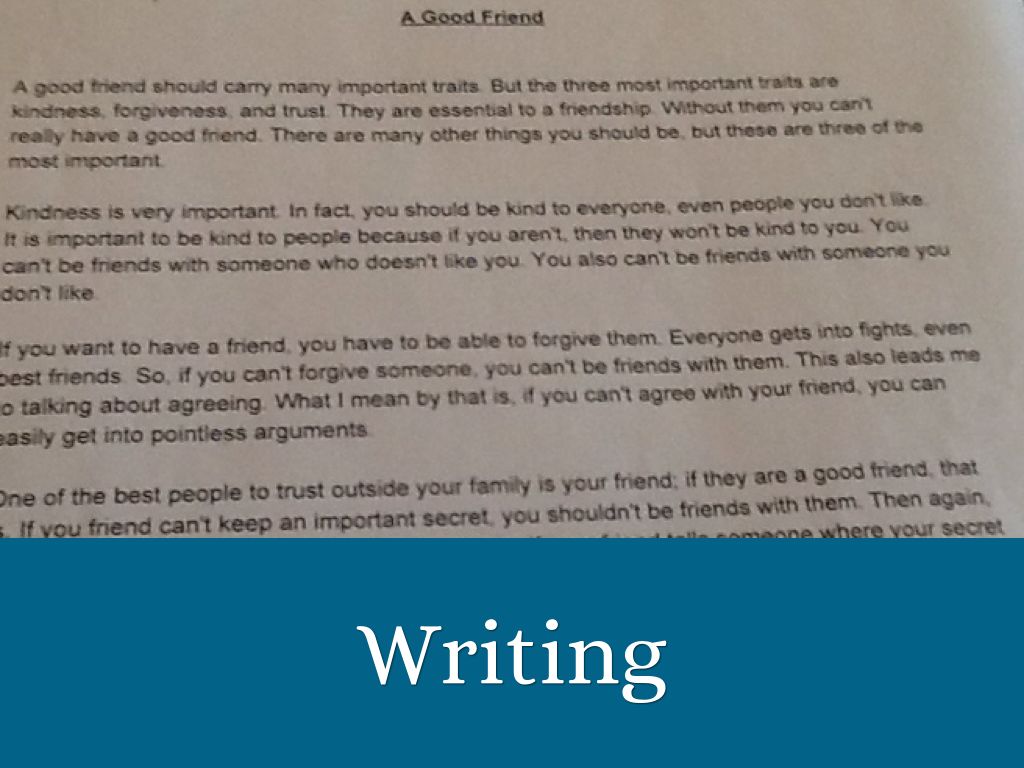 This is my latest writing project. I put a lot of work and thought into this assignment. I checked my grammar and sentence construction. The next time there is a big writing project, I may want to work a little faster.