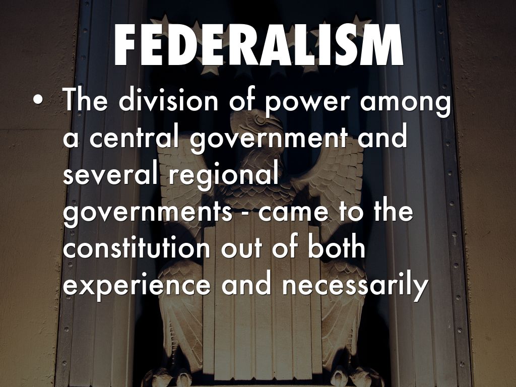 The division of power among a central government and several regional governments - came to the constitution out of both experience and necessarily