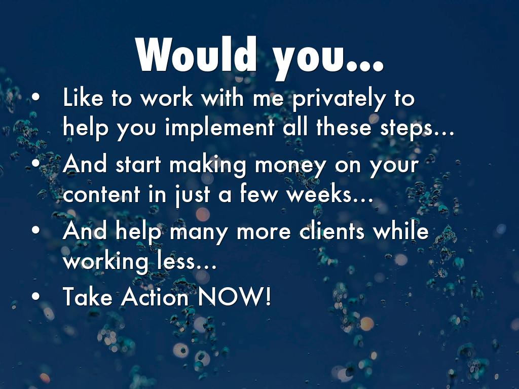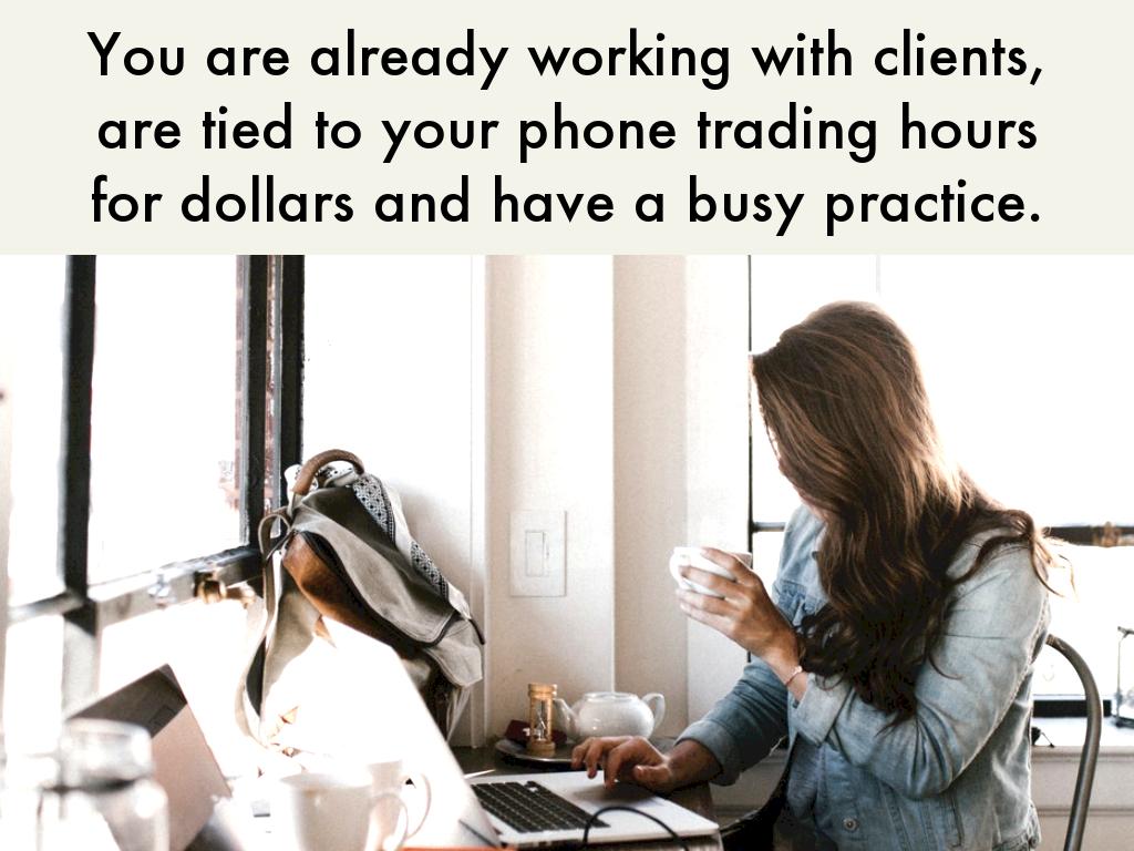You are already working with clients, are tied to your phone trading hours for dollars and have a busy practice.