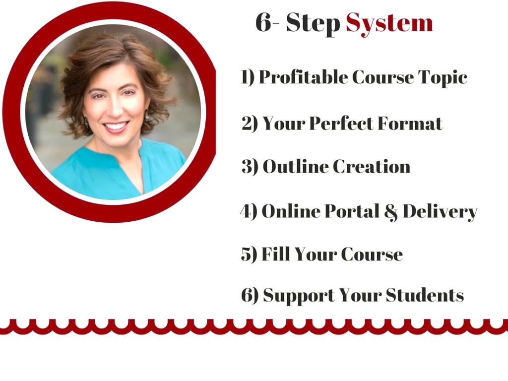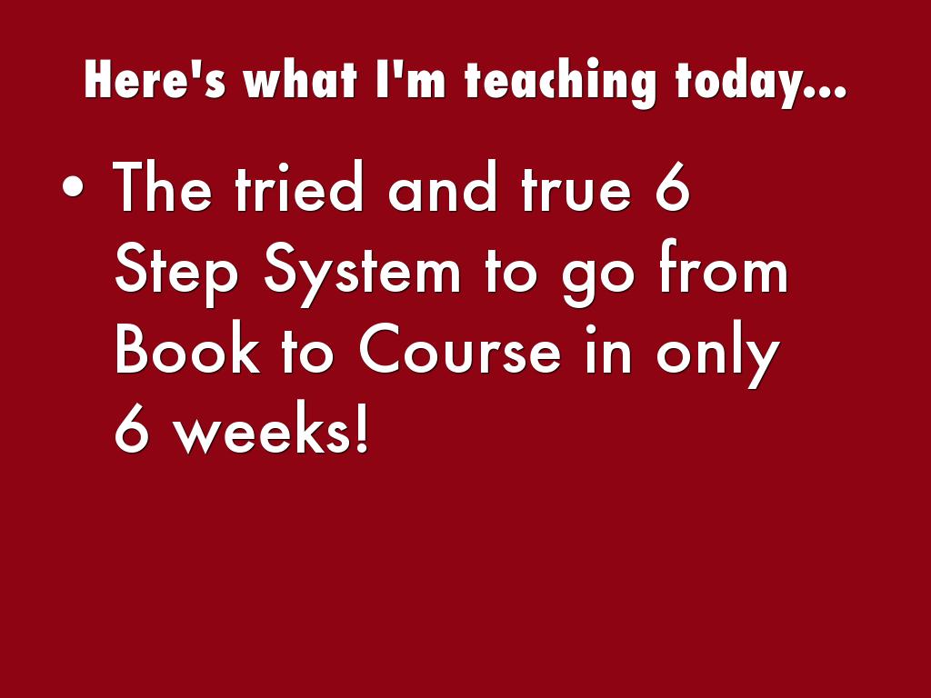 - The tried and true 6 Step System to go from Book to Course in only 6 weeks!