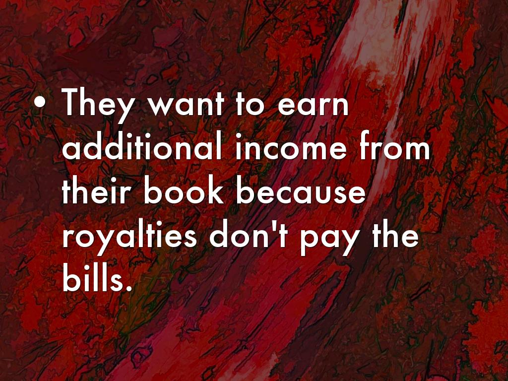- They want to earn additional income from their book because royalties don't pay the bills.