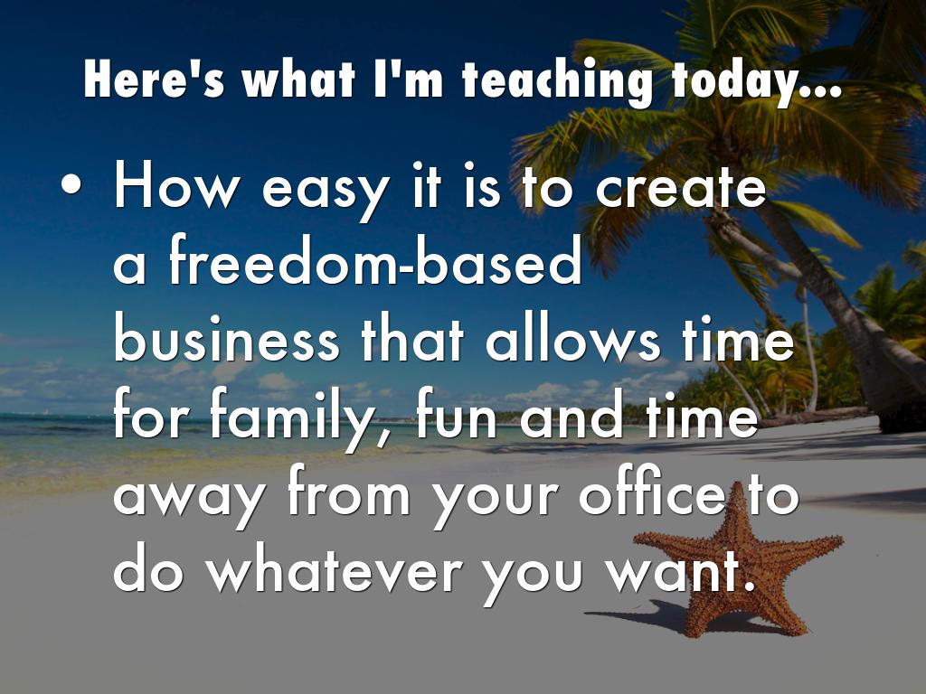 - How easy it is to create a freedom-based business that allows time for family, fun and time away from your office to do whatever you want.