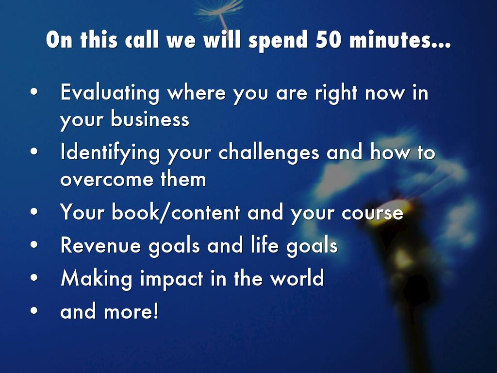 On this call we will spend 50 minutes...
