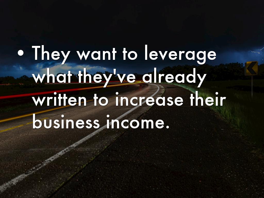 - They want to leverage what they've already written to increase their business income.