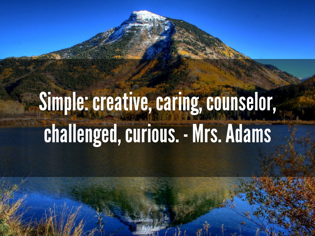 Simple: creative, caring, counselor, challenged, curious. - Mrs. Adams