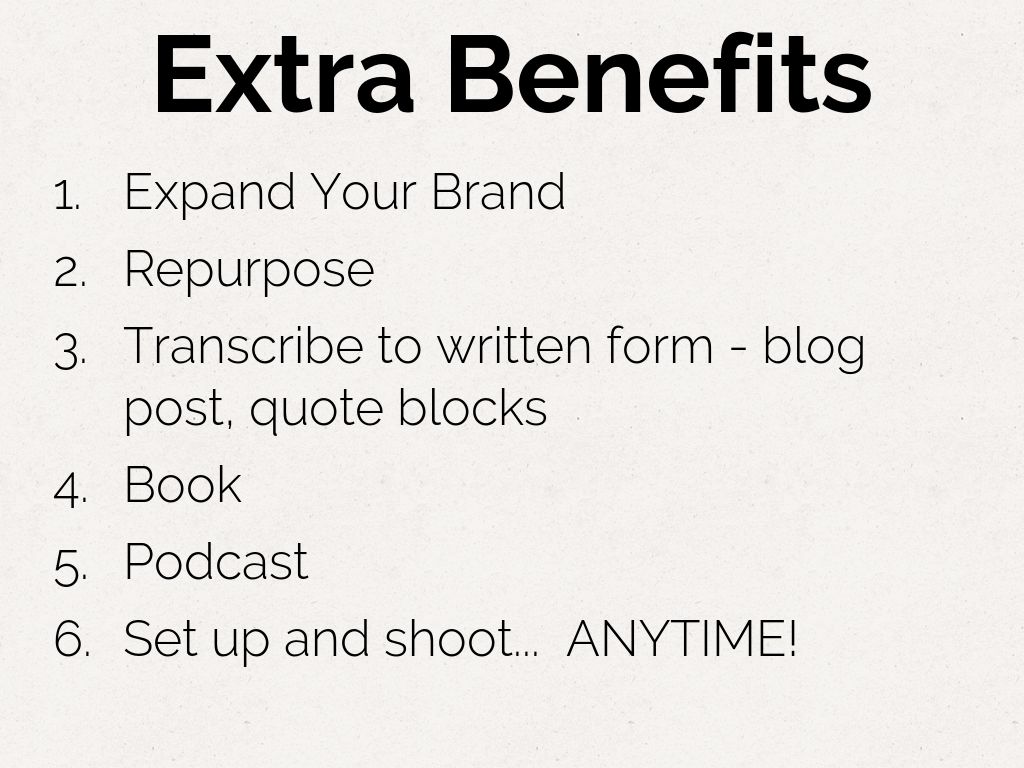 6 MONTH VIDEO PLANNING CALENDAR - ($27) 16 WAYS TO REPURPOSE YOUR VIDEOS - ($47) 99 VIDEO IDEAS - ($97)