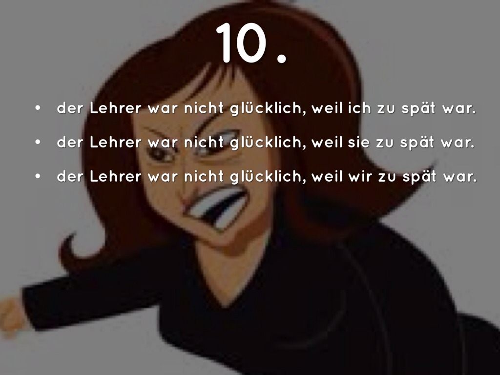 der Lehrer war nicht glücklich, weil wir zu spät war.