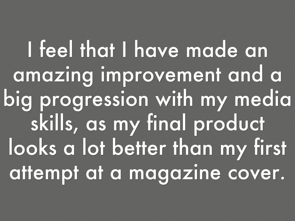 I feel that I have made an amazing improvement and a big progression with my media skills, as my final product looks a lot better than my first attempt at a magazine cover.