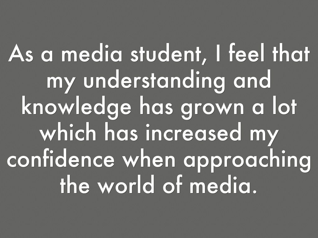 As a media student, I feel that my understanding and knowledge has grown a lot which has increased my confidence when approaching the world of media.