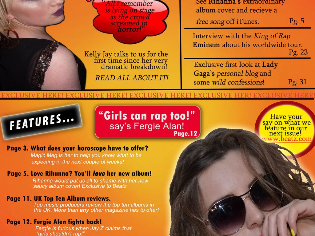 As well as the cover lines and masthead, I feel like my music magazine is a lot more professional and polished looking than the ones featured in my preliminary task.