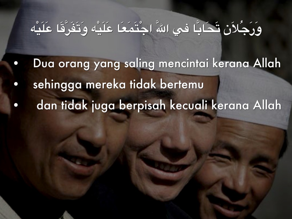 وَرَجُلَانِ تَحَابَّا فِي اللَّهِ اجْتَمَعَا عَلَيْهِ وَتَفَرَّقَا عَلَيْهِ