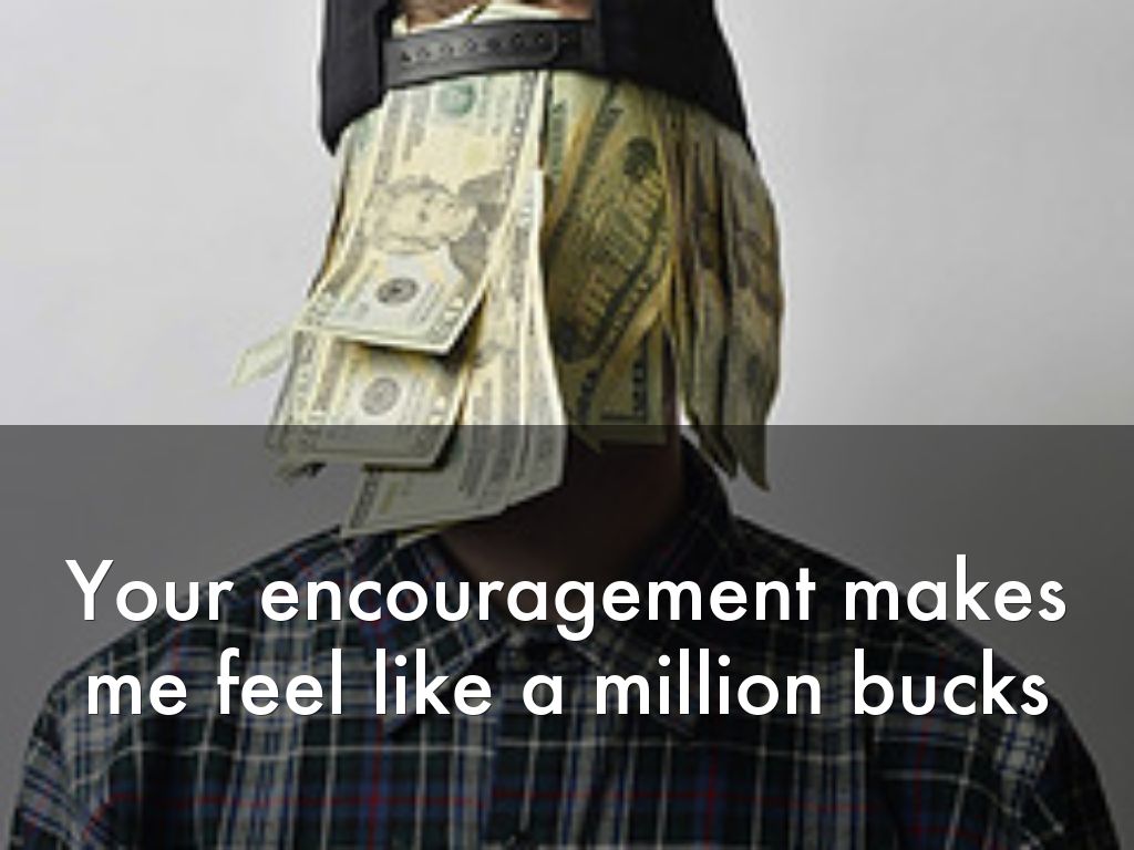 Your encouragement makes me feel like a million bucks