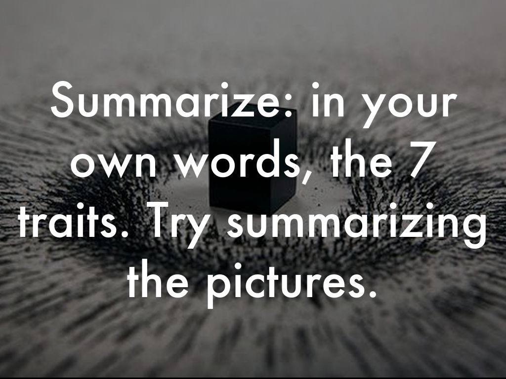 Summarize: in your own words, the 7 traits. Try summarizing the pictures.