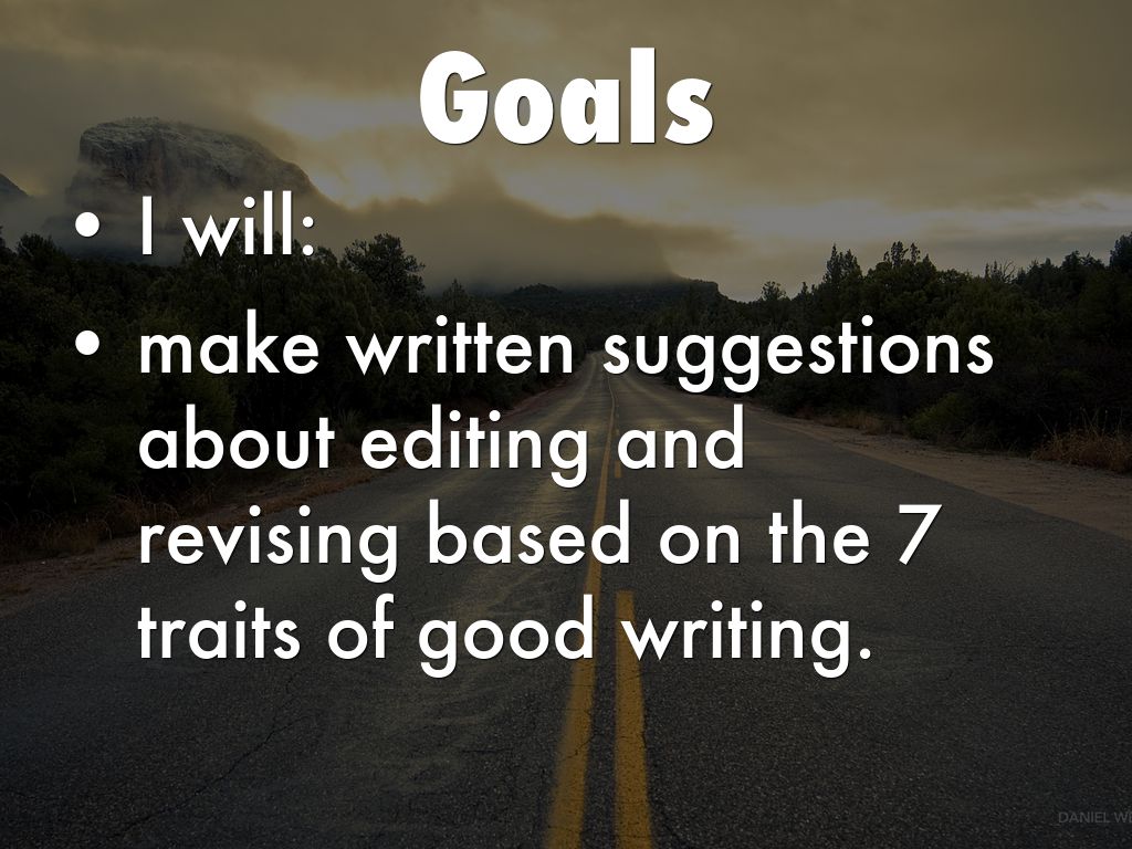 • make written suggestions about editing and revising based on the 7 traits of good writing.
