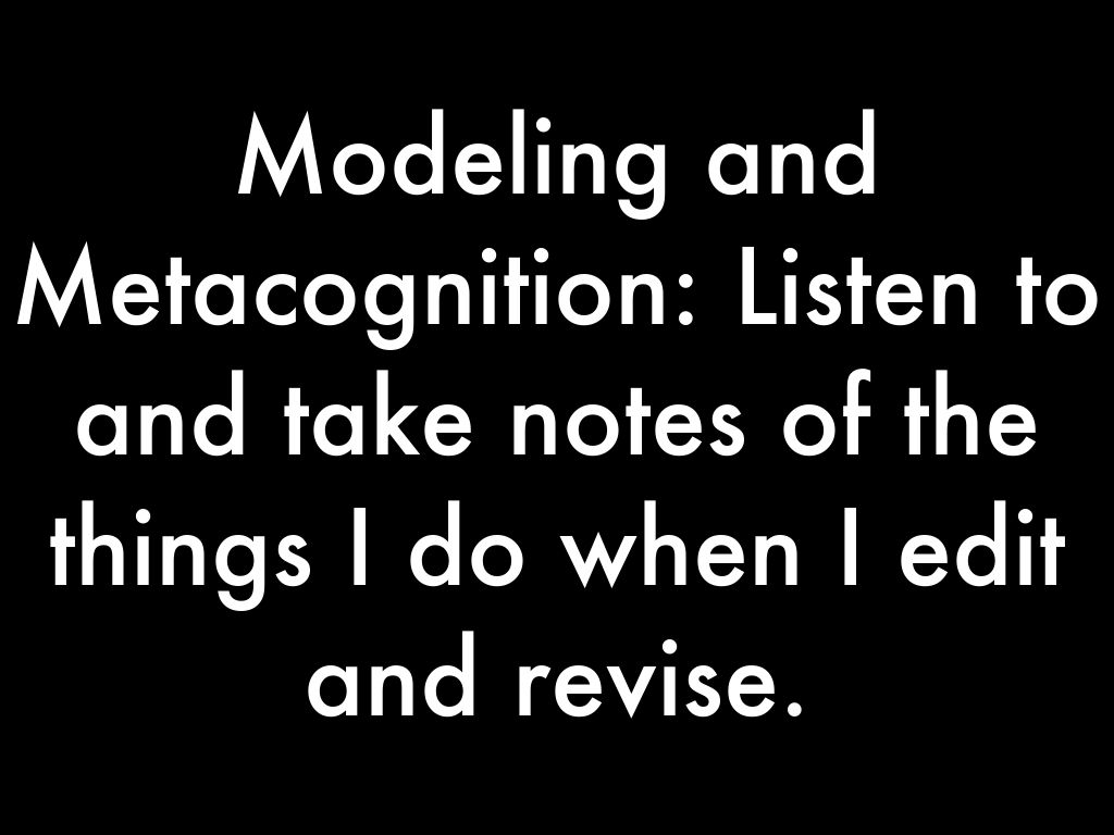Modeling and Metacognition: Listen to and take notes of the things I do when I edit and revise.