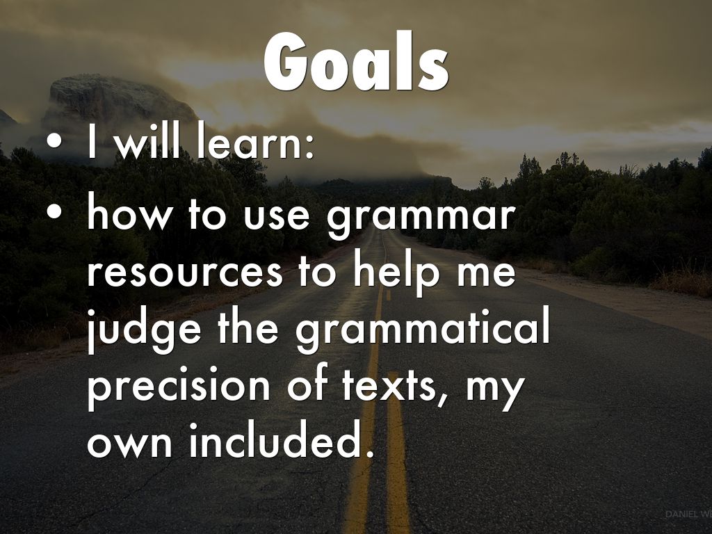 • how to use grammar resources to help me judge the grammatical precision of texts, my own included.
