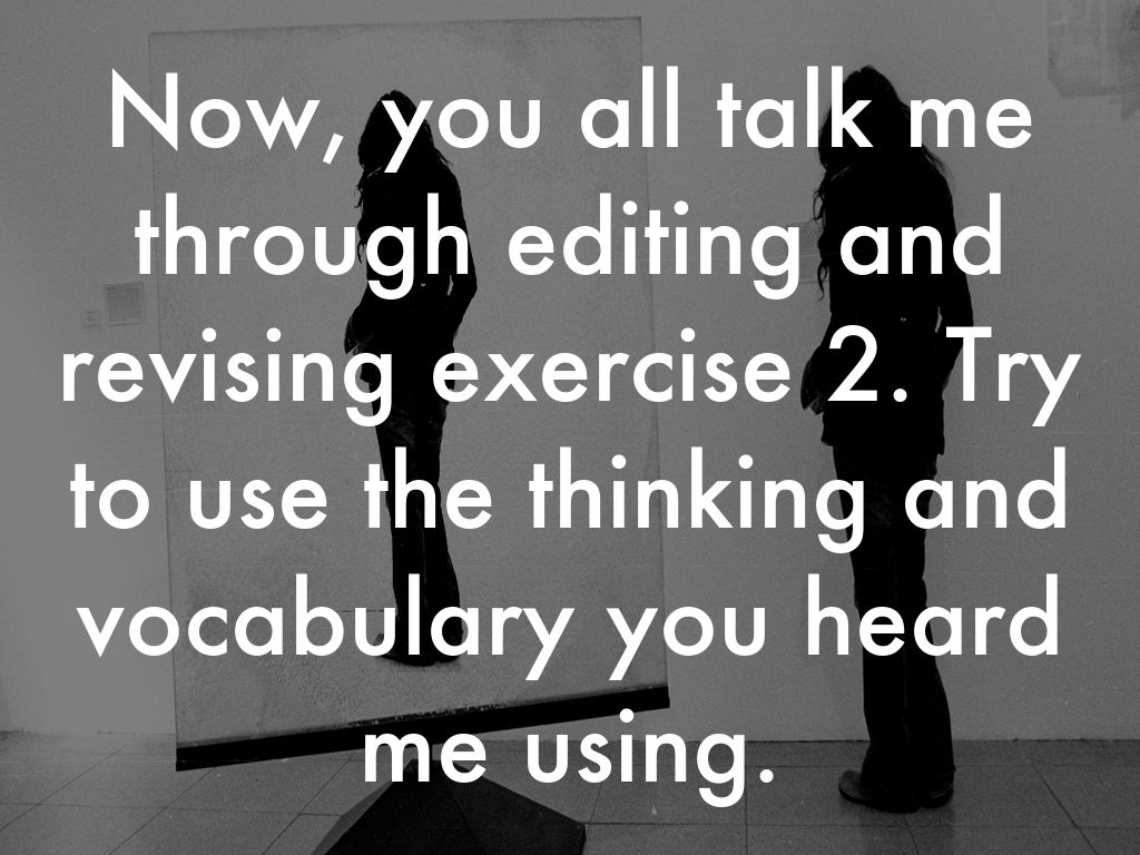Now, you all talk me through editing and revising exercise 2. Try to use the thinking and vocabulary you heard me using.