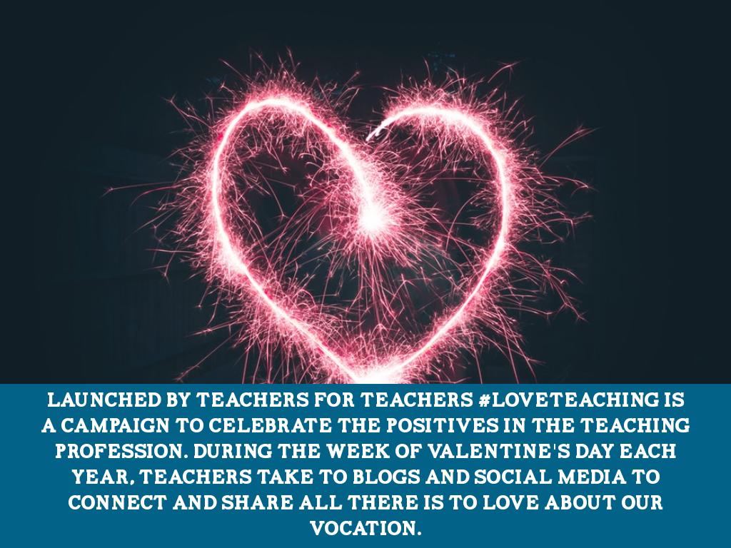 Launched by teachers for teachers #LoveTeaching is a campaign to celebrate the positives in the teaching profession. During the week of Valentine's Day each year, teachers take to blogs and social media to connect and share all there is to love about our vocation.