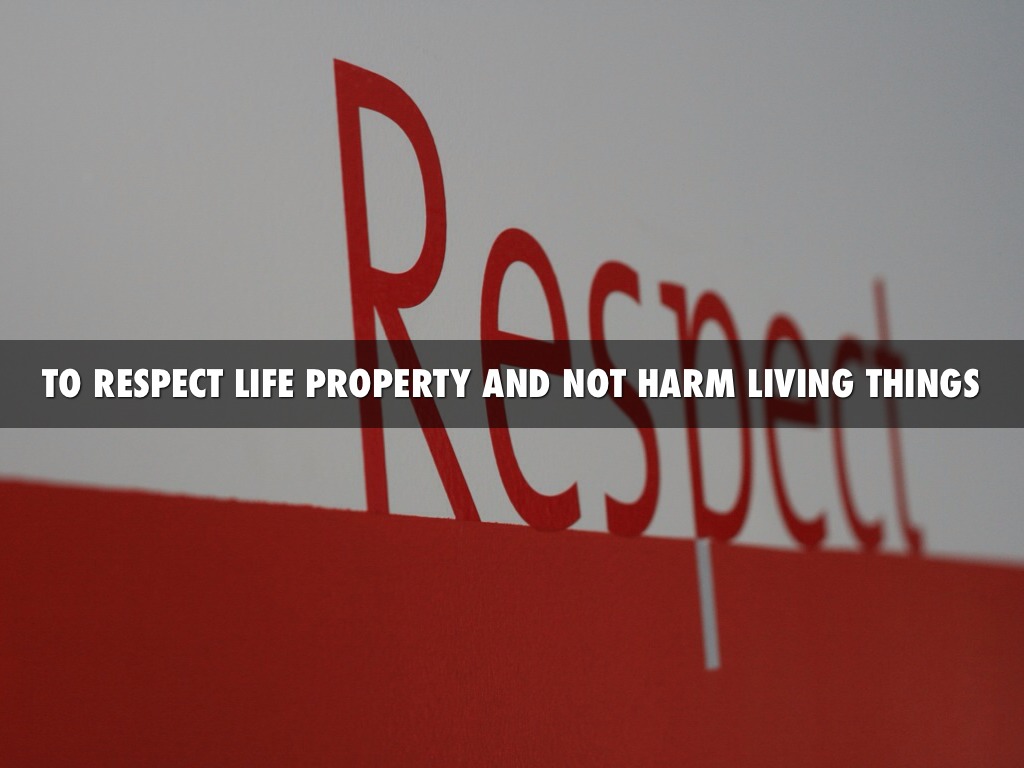 TO RESPECT LIFE PROPERTY AND NOT HARM LIVING THINGS