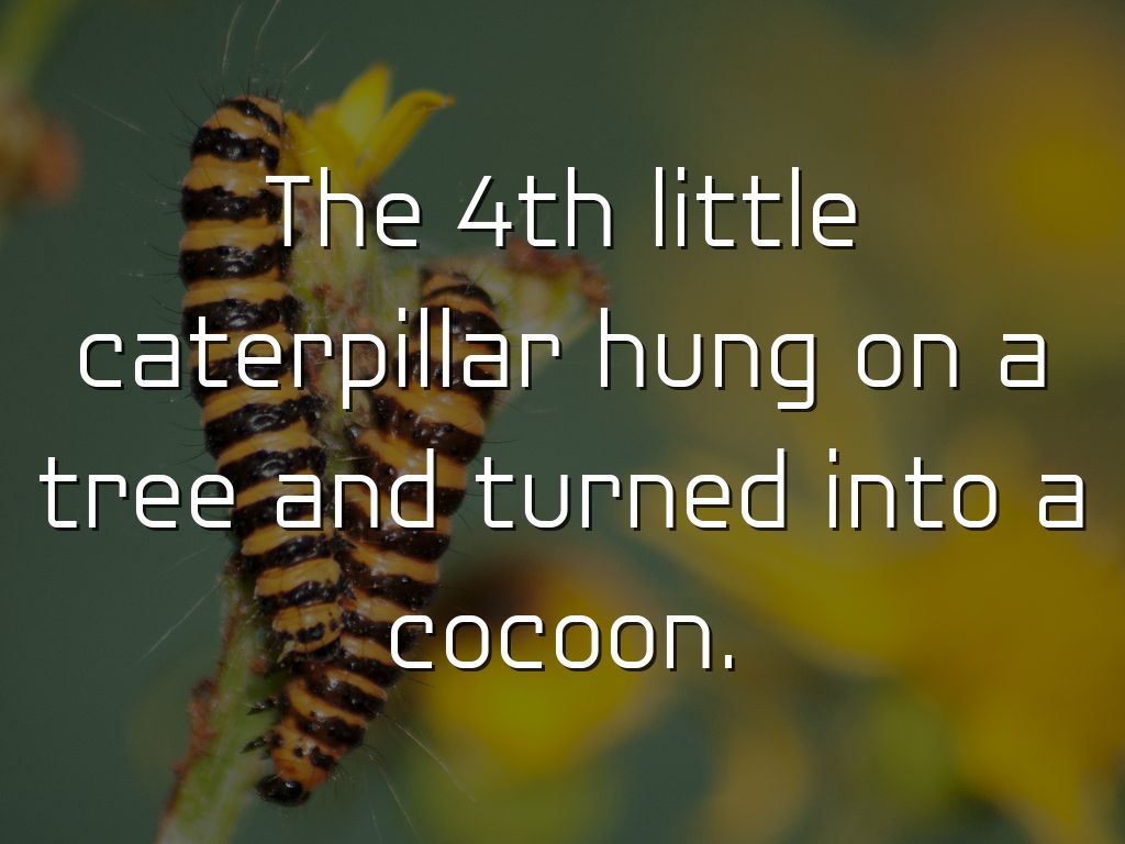The 4th little caterpillar hung on a tree and turned into a cocoon.