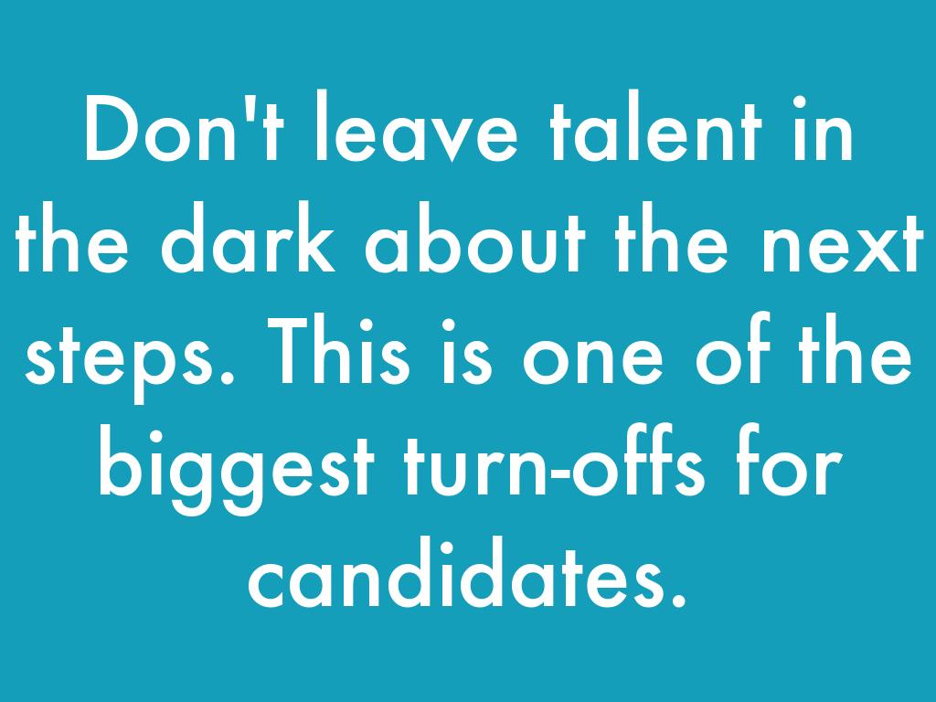 Don't leave talent in the dark about the next steps. This is one of the biggest turn-offs for candidates.