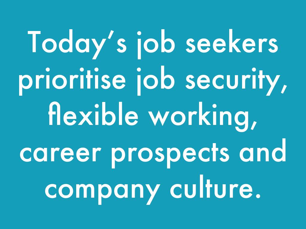 Today’s job seekers prioritise job security, flexible working, career prospects and company culture.