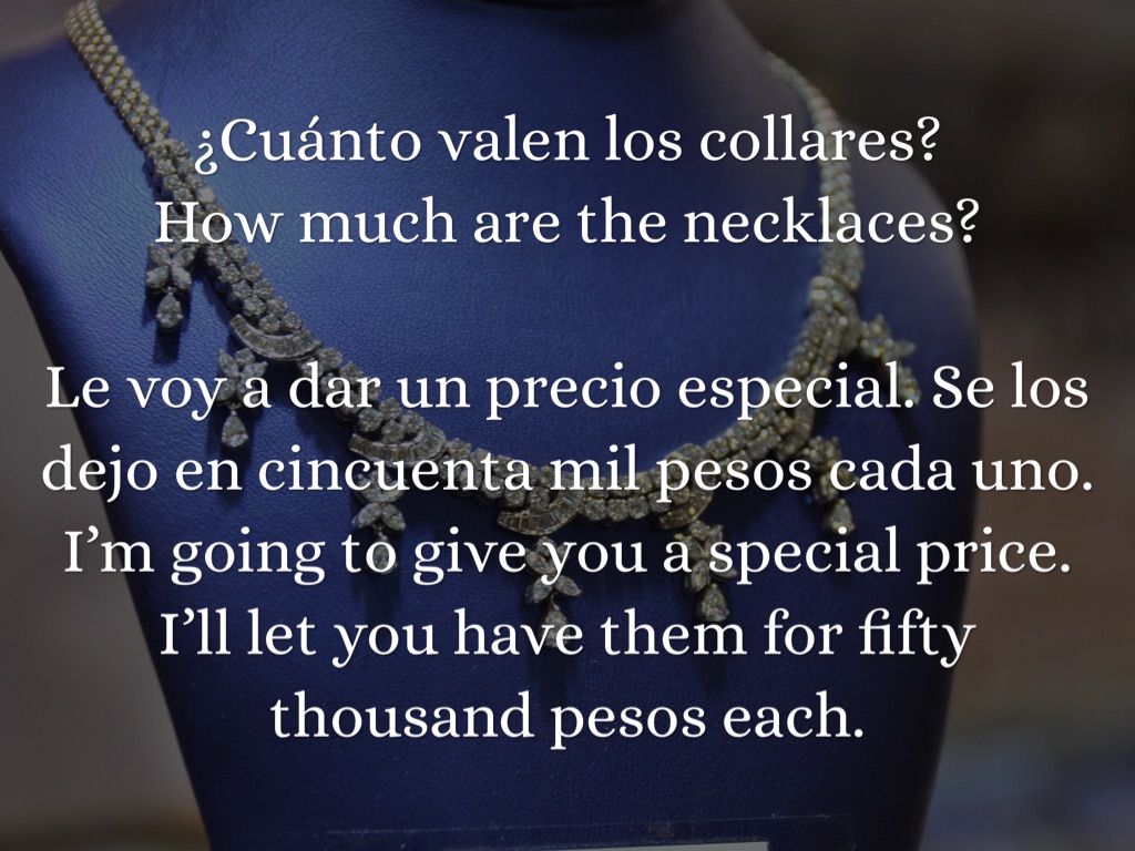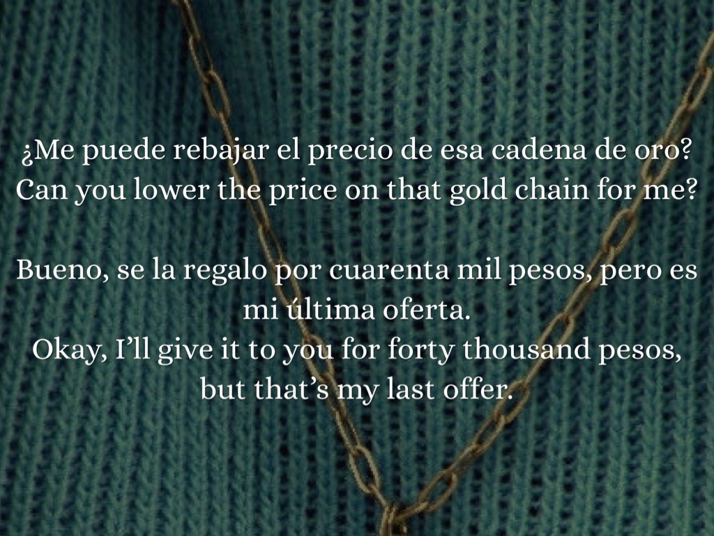 Le voy a dar un precio especial. Se los dejo en cincuenta mil pesos cada uno. I’m going to give you a special price. I’ll let you have them for fifty thousand pesos each.