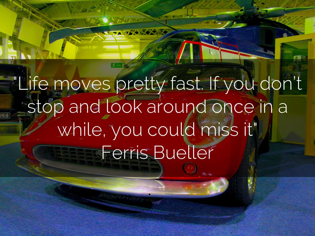"Life moves pretty fast. If you don’t stop and look around once in a while, you could miss it"