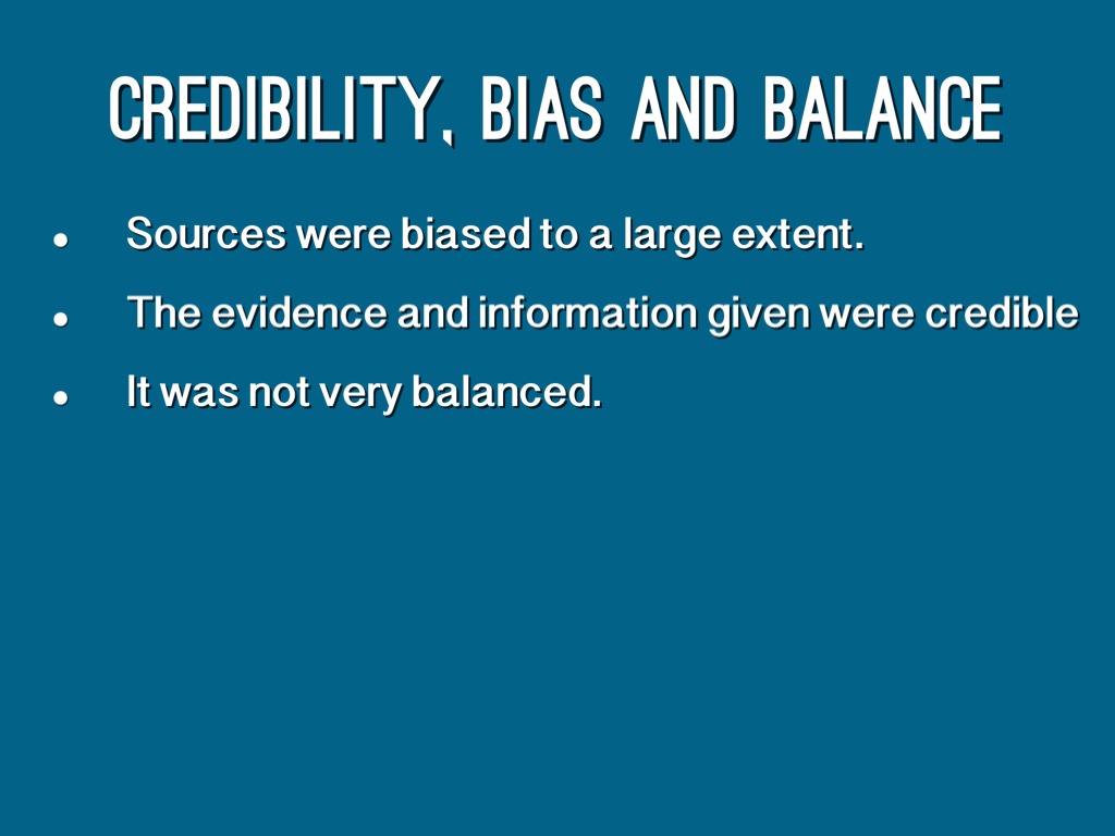 CREDIBILITY, BIAS AND BALANCE
