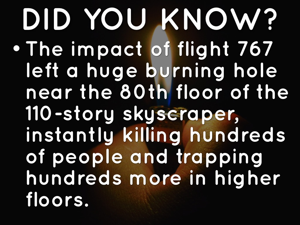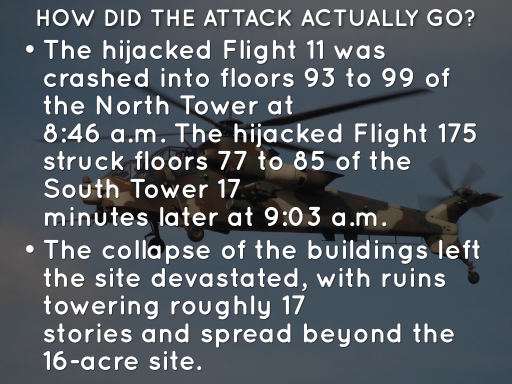The hijacked Flight 11 was crashed into floors 93 to 99 of the North Tower at