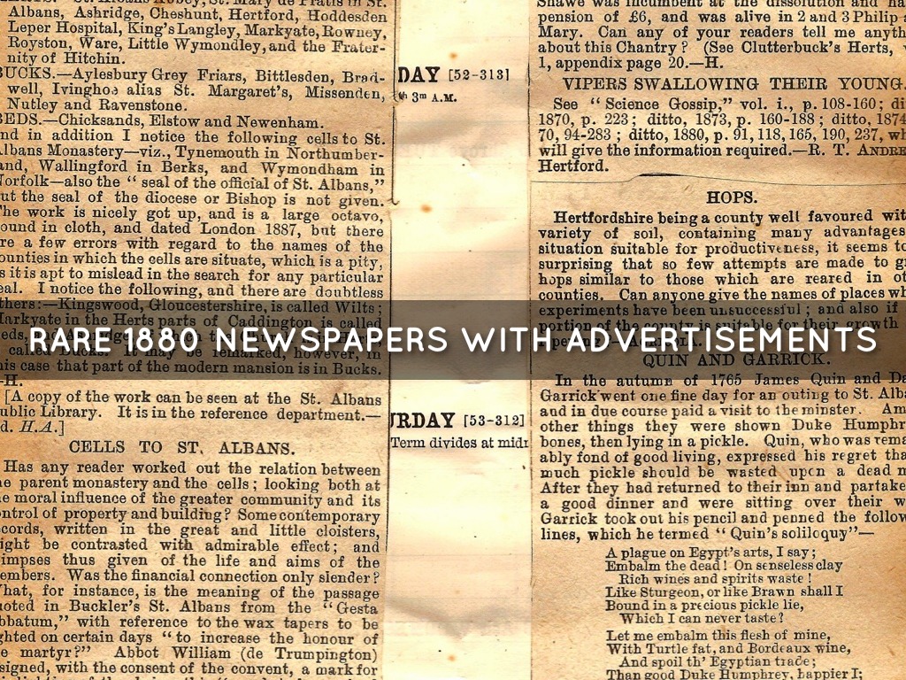 RARE 1880 NEWSPAPERS WITH ADVERTISEMENTS