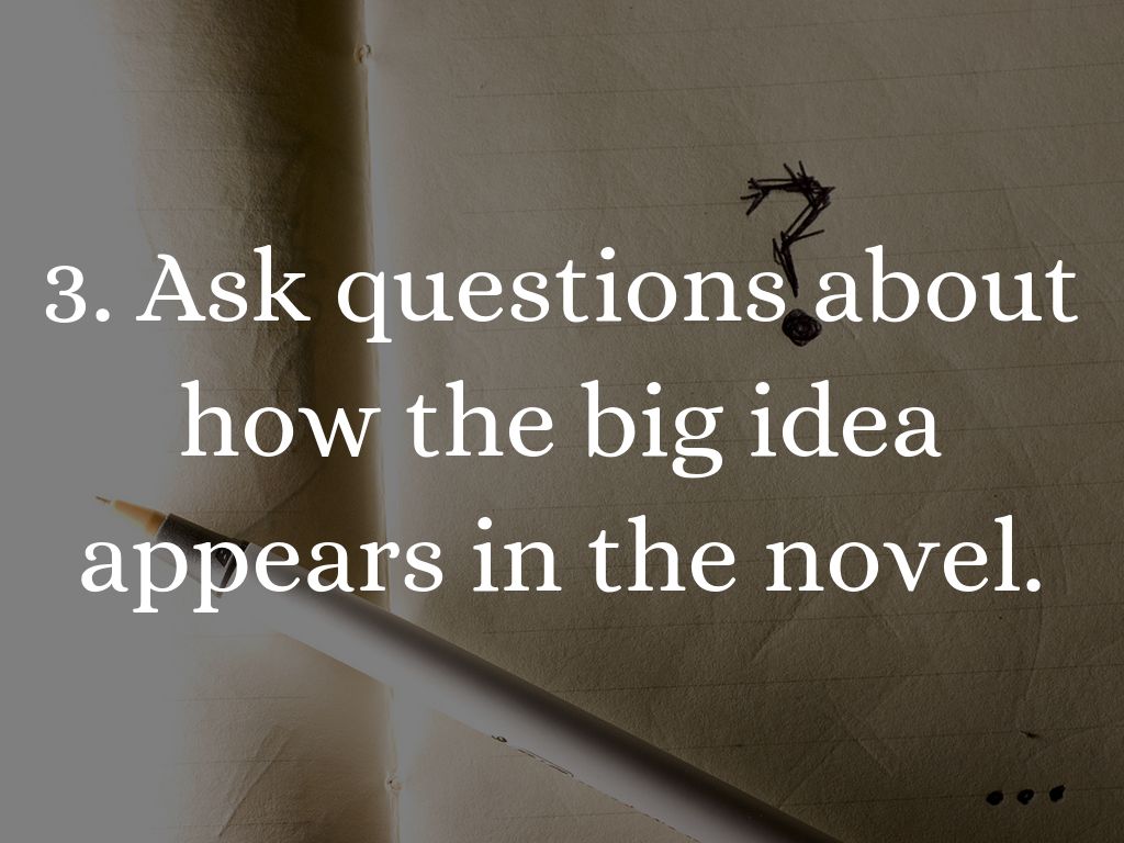 3. Ask questions about how the big idea appears in the novel.