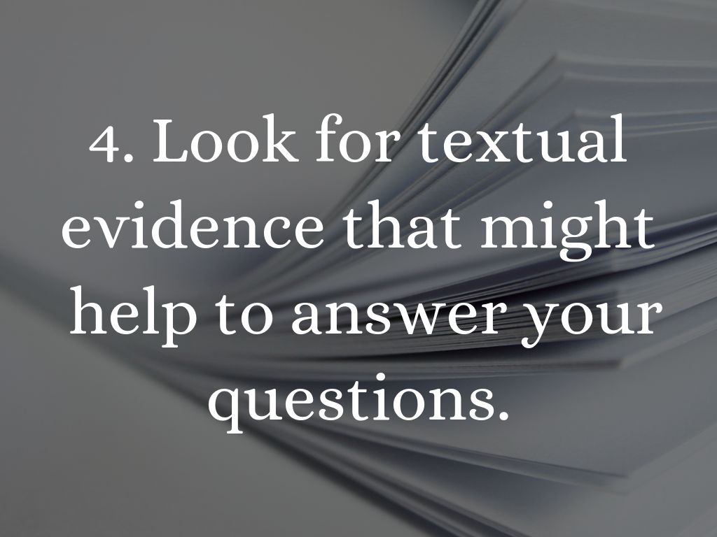 4. Look for textual evidence that might help to answer your questions.