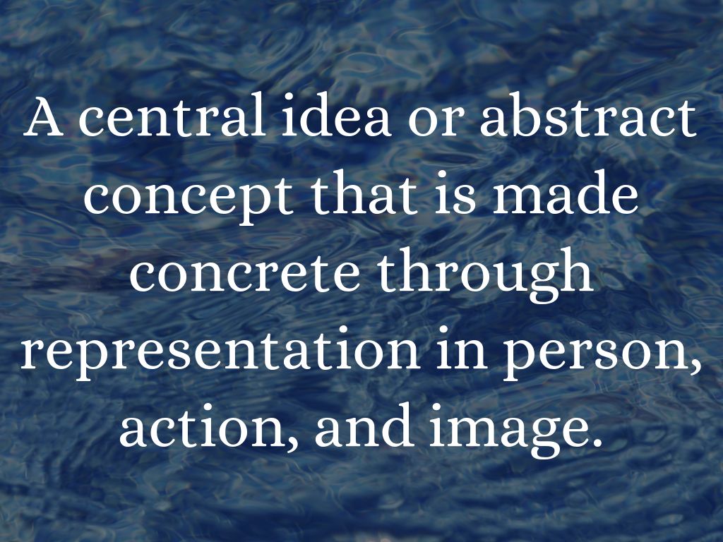 A central idea or abstract concept that is made concrete through representation in person, action, and image.