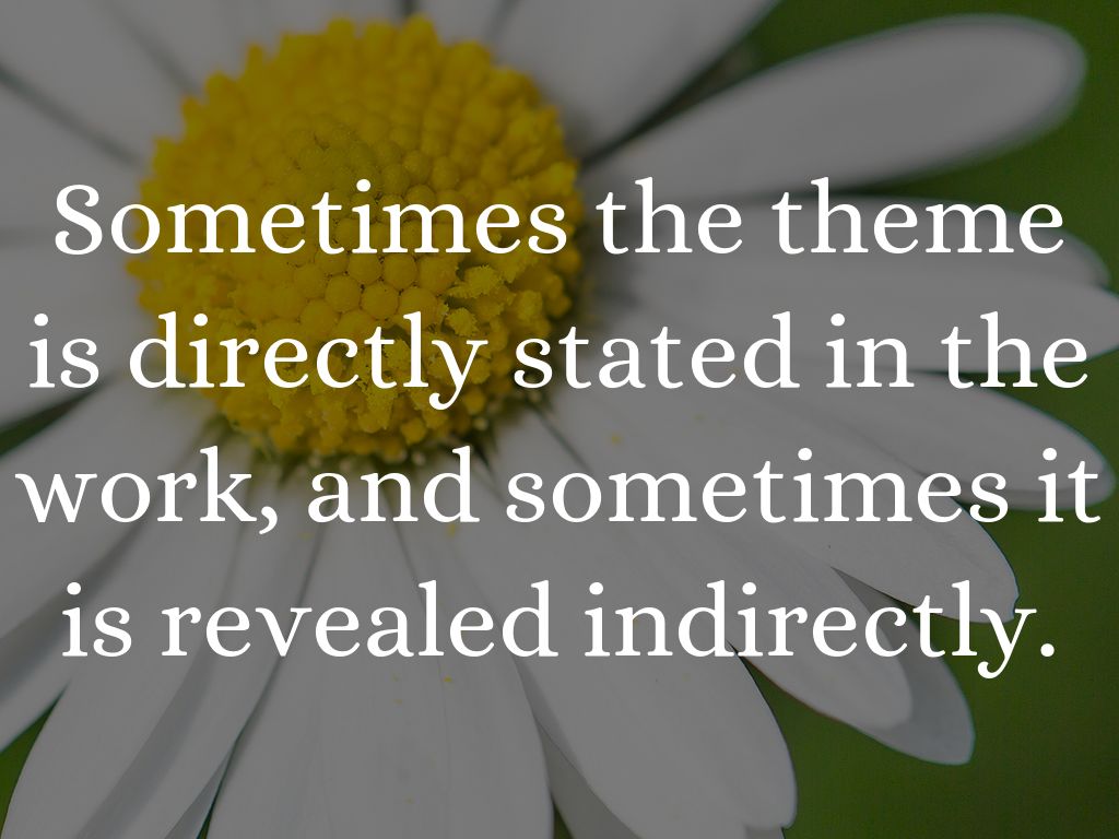 Sometimes the theme is directly stated in the work, and sometimes it is revealed indirectly.