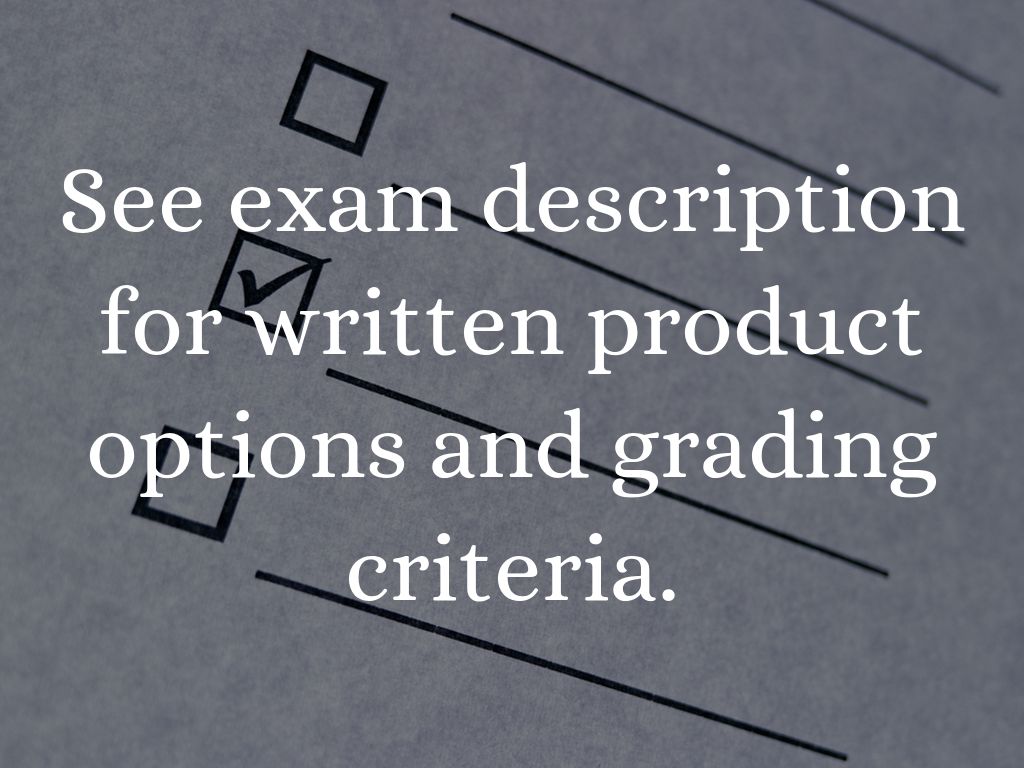 See exam description for written product options and grading criteria.