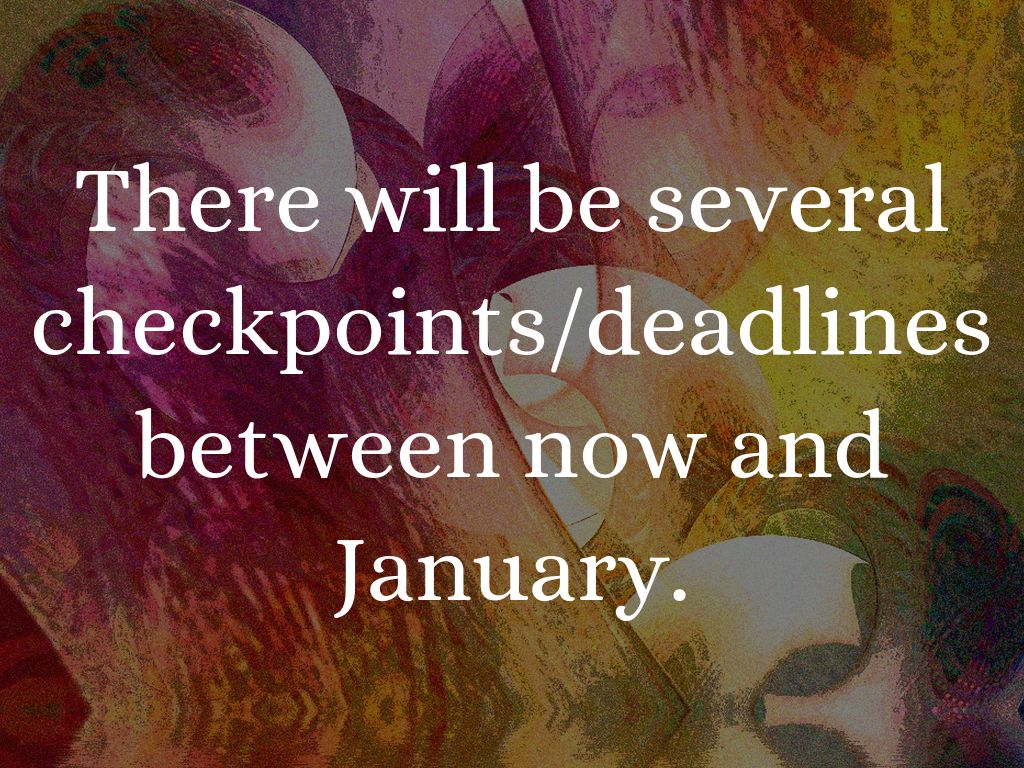 There will be several checkpoints/deadlines between now and January.